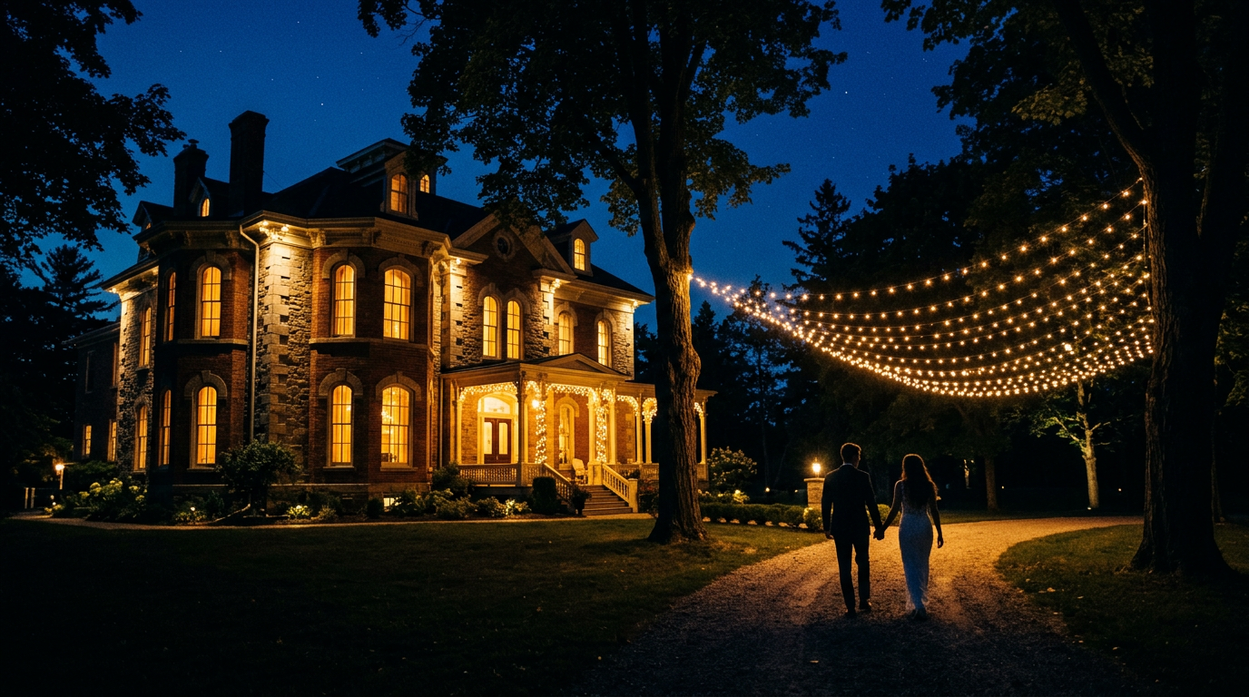 A celestial celebration with deep navy skies, animated twinkling stars, and gold constellations. Features a live countdown timer and star-map inspired section layouts.